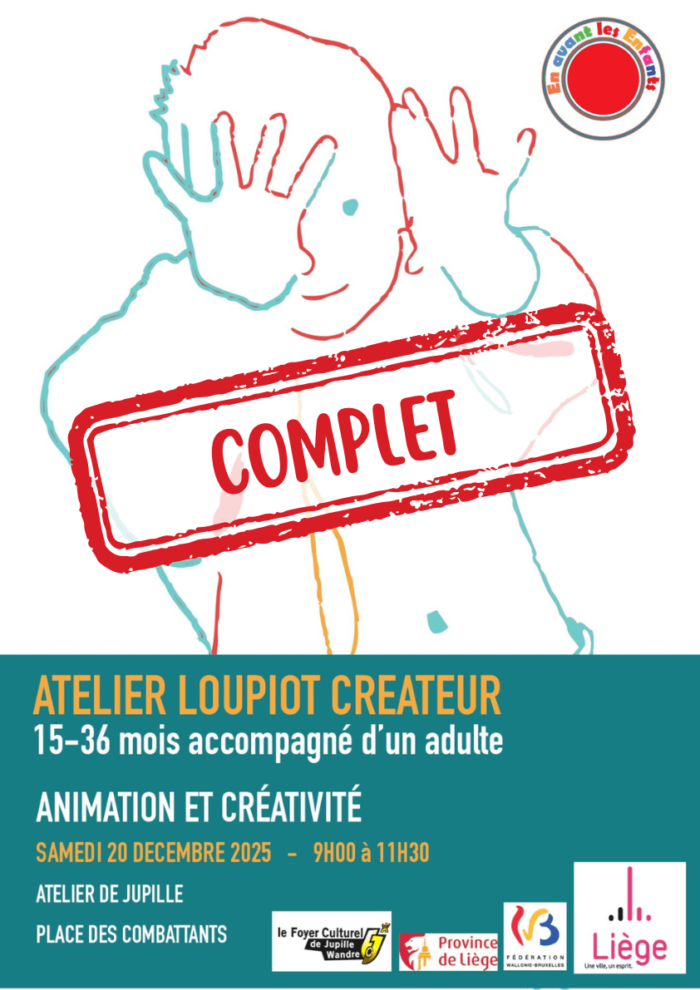 Dans le cadre de « En avant les enfants », l’asbl Animation et créativité, en collaboration avec le Foyer culturel de Jupille-Wandre, vous propose un atelier créatif pour tout petits. Les «loupiots créateurs» (accompagnés d’un adulte) seront initiés à la joie de la peinture et du modelage. La matinée sera entrecoupée de moments de jeux libres, de lectures d’histoires et d’un moment final de chants et de rondes.